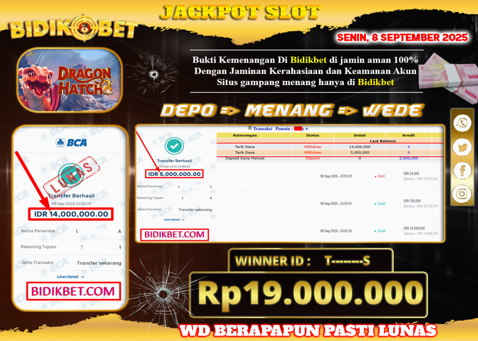 JACKPOT SLOT DRAGON HATCH Rp.19.000.000 LANGSUNG DI BAYAR LUNAS OLEH BIDIKBET