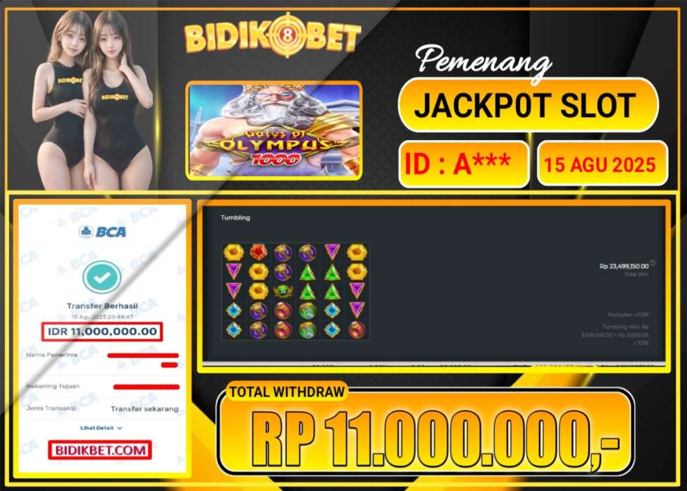 JACKPOT SLOT GATES OF OLYMPUS 1000 Rp.11.000.000 LANGSUNG DI BAYAR LUNAS OLEH BIDIKBET