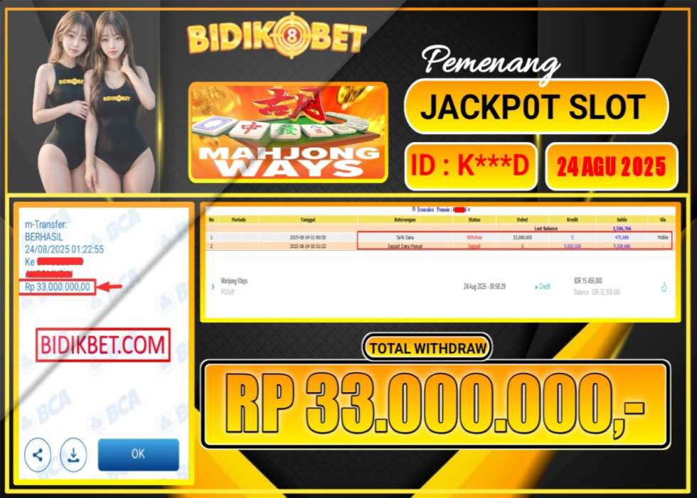 JACKPOT SLOT MAHJONG WAYS Rp.33.000.000 LANGSUNG DI BAYAR LUNAS OLEH BIDIKBET