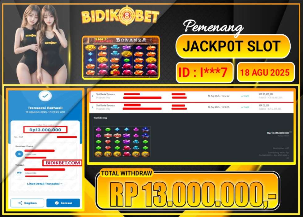 JACKPOT SLOT MONIG BONANZA Rp.13.000.000 LANGSUNG DI BAYAR LUNAS OLEH BIDIKBET