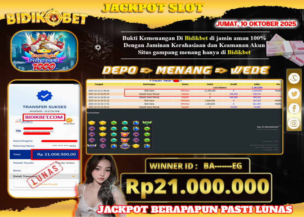 JACKPOT SLOT STARLIGHT PRINCESS 1000 Rp.21.000.000 LANGSUNG DI BAYAR LUNAS OLEH BIDIKBET