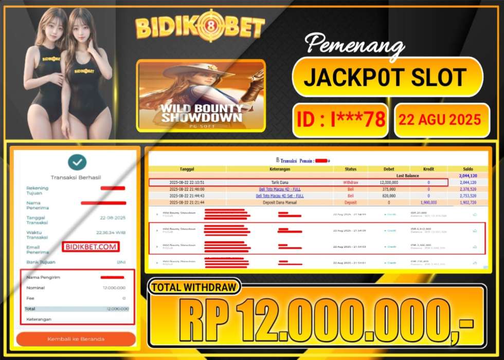 JACKPOT SLOT WILD BOUNTY SHOWDOWN Rp.12.000.000 LANGSUNG DI BAYAR LUNAS OLEH BIDIKBET