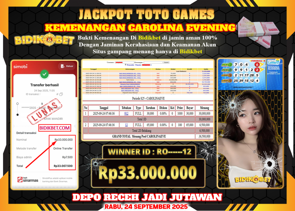 JACKPOT TOGEL CAROLINA EVE Rp.33.000.000 LANGSUNG DI BAYAR LUNAS OLEH BIDIKBET