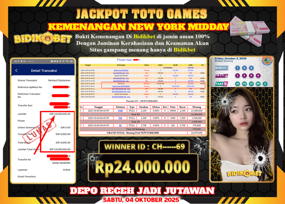 JACKPOT TOGEL NEW YORK MID Rp.24.000.000 LANGSUNG DI BAYAR LUNAS OLEH BIDIKBET