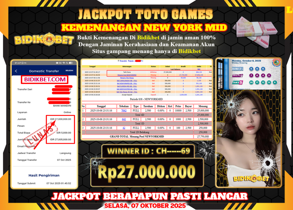 JACKPOT TOGEL NEW YORK MID Rp.27.000.000 LANGSUNG DI BAYAR LUNAS OLEH BIDIKBET