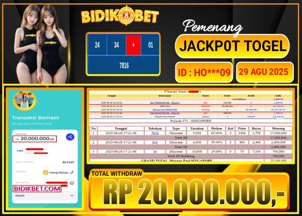 JACKPOT TOGEL SINGAPORE Rp.20.000.000 LANGSUNG DI BAYAR LUNAS OLEH BIDIKBET