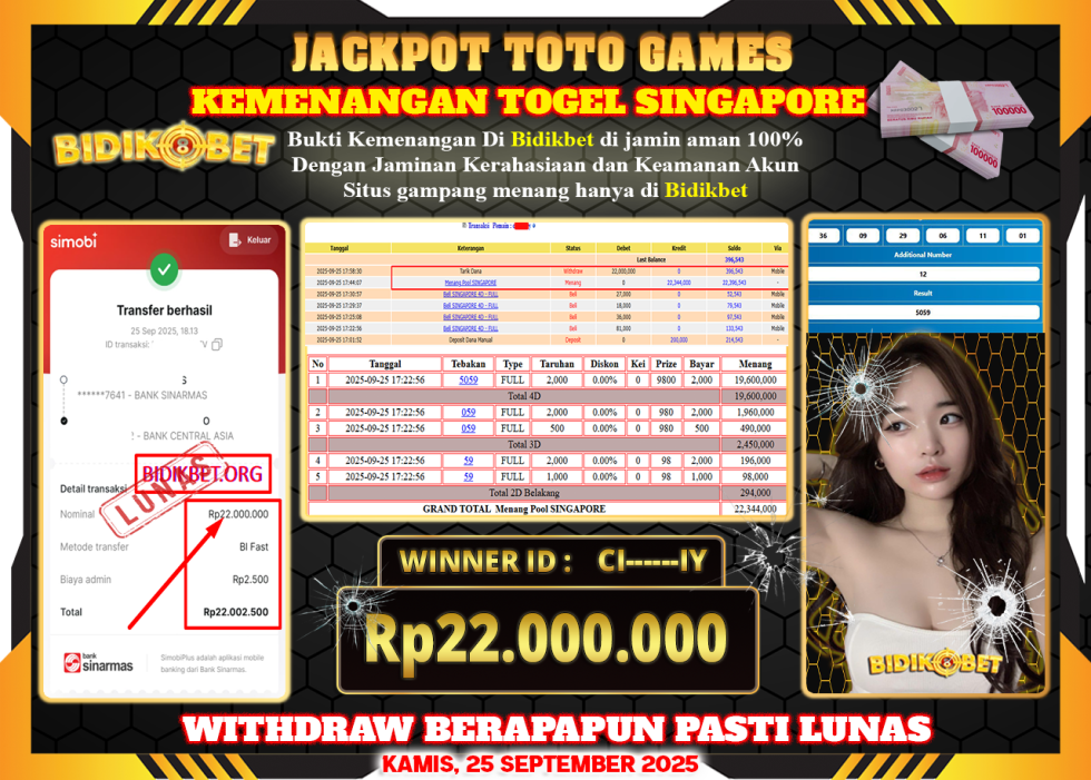 JACKPOT TOGEL SINGAPORE Rp.22.000.000 LANGSUNG DI BAYAR LUNAS OLEH BIDIKBET